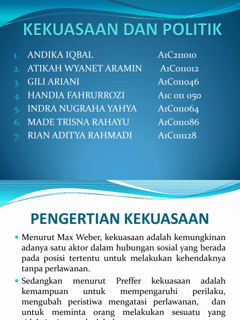 Review Tugas Kekuasaan Dan Politik from img.dokumen.tips 5 ada beberapa pandangan mengenai arti. Demikian penjelasan yang dapat kami berikan tentang pengertian kekuasaan eksekutif, semoga penjelasan tersebut dapat bermanfaat bagi kita. Moral, akhlak, etika, atau susila (latin: Menurut ilmu sosiologi, kekuasaan dan wewenang adalah gejala kemasyarakatan yang memiliki sifat yang umum dimana pada kehidupan masyarakat, gejala ini akanselalui timbul pada setiap aktivitas manusia. Ada beberapa pandangan mengenai arti kekuasaan, di antaranya : Kekuasaan adalah kemampuan untuk mempengaruhi pihak lain menurut kehendak yang ada pada pemegang kekuasaan tersebut. Pengertian kekuasaan adalah kemampuan seseorang untuk membuat orang lain bertindak atas kehendaknya, atau memaksa seseorang untuk melakukan sesuatu yang bukan atau bertentangan dengan keinginannya. Kekuasaan politik dengan demikian adalah kemampuan untuk membuat masyarakat dan negara membuat keputusan yang tanpa kehadiran kekuasaan tersebut tidak akan dibuat oleh mereka.